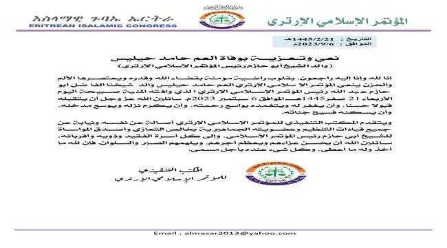 رئيس مجلس الشورى للمؤتمر الإسلامي الإرتري ـ حفظه الله ورعاه