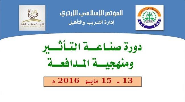 في اطار اهتمام التنظيم برفع قدرات أعضائه وزيادة معارفهم ومهاراتهم في سبيل تطوير العمل وزيادة كفاءته أقامت إدارة التدريب والتأهيل للمؤتمر الإسلامي الإرتري  في منتصف شهر مايو الجاري دورة متقدمة في صناعة التأثير ومنهجية المدافعة ، استهدفت عدداً من قيادات التنظيم ، استغرقت ثلاثة أيام ، تلقى فيها المشاركون مفهوم المدافعة وإطار عملها ، وطرقها وأدواتها ، وآليات التغيير الاجتماعي ، وعملية اتخاذ القرار وغيرها من الموضوعات الهامة .