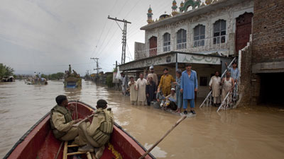 Pakistan's government has sent more than 30,000 troops to help with the relief effort, which has been aided by a slackening of the rains.